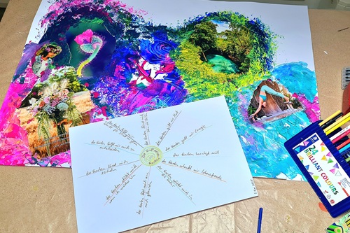 Der kreative Prozess mit vielfältigen Gestaltungsmethoden eröffnet Dir die Möglichkeit, das sichtbar zu machen, was Dich innerlich bewegt – auch das, was sich schwer in Worte fassen lässt, findet seinen Ausdruck. Die Übungen wirken stabilisierend und Du findest Zugang zu innerer Ruhe, Klarheit und emotionaler Balance, stärkst Deine Selbstwahrnehmung und entwickelst neue Perspektiven auf das, was Dich bewegt.