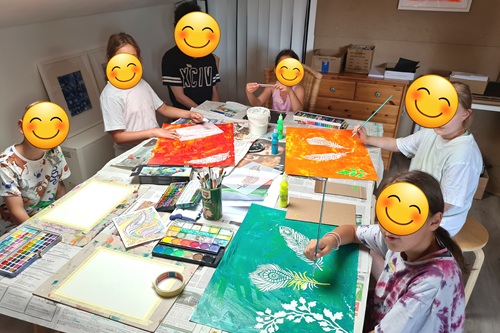 Im Sommeratelier wurde nicht nur gemalt, getont und gedruckt – es wurde gestaunt, gelacht und gemeinsam gewachsen. In den Kunstworkshops experimentierten die Kinder mit einer Fülle an Materialien: Strukturpaste, Ton, Aquarellfarben, Naturmaterialien und Linoldruck wurden zu Werkzeugen ihrer Fantasie. Die tägliche Ausstellung der entstandenen Werke war ein festlicher Höhepunkt – Eltern, Großeltern und Geschwister bestaunten die kreative Tiefe und den Ideenreichtum der jungen Künstler:innen.